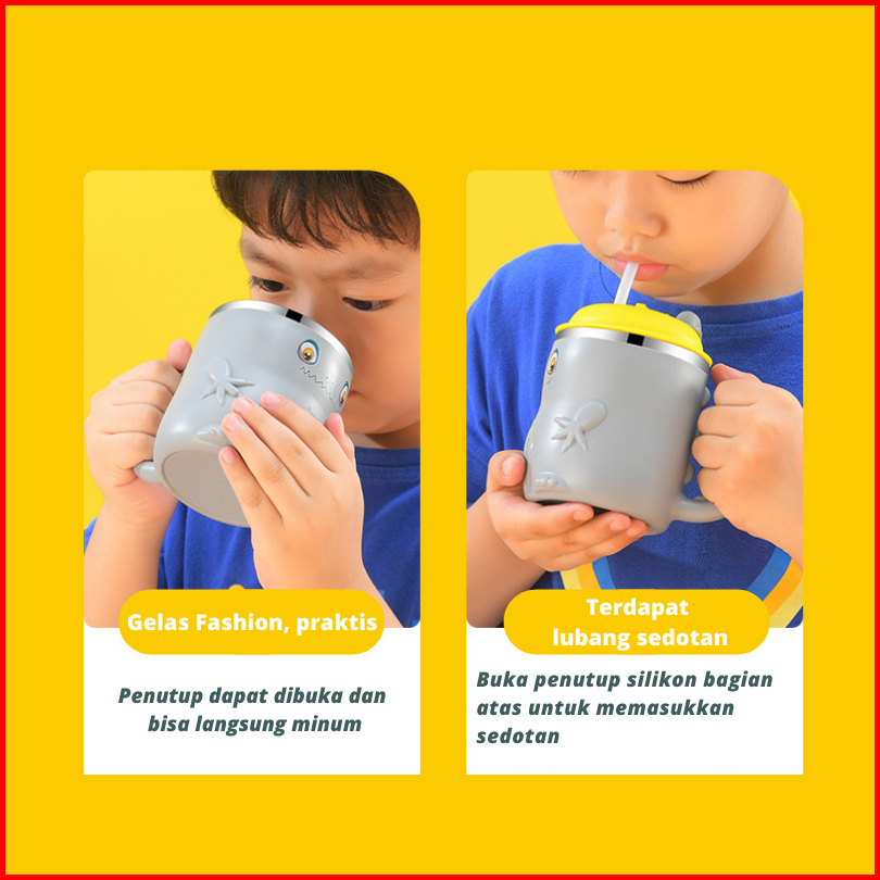 Esindo Gelas Karakter Mug Karakter Lucu Karakter Dinosaurus Stainless Gelas Premium