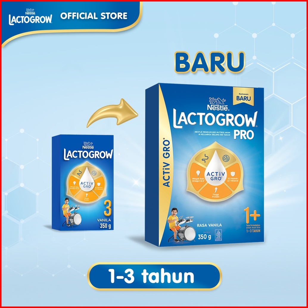 Nestle Lactogrow Pro 1 Lactogrow 3 Dengan Activgro Susu Vanila Box - 350g 1-3 Tahun
