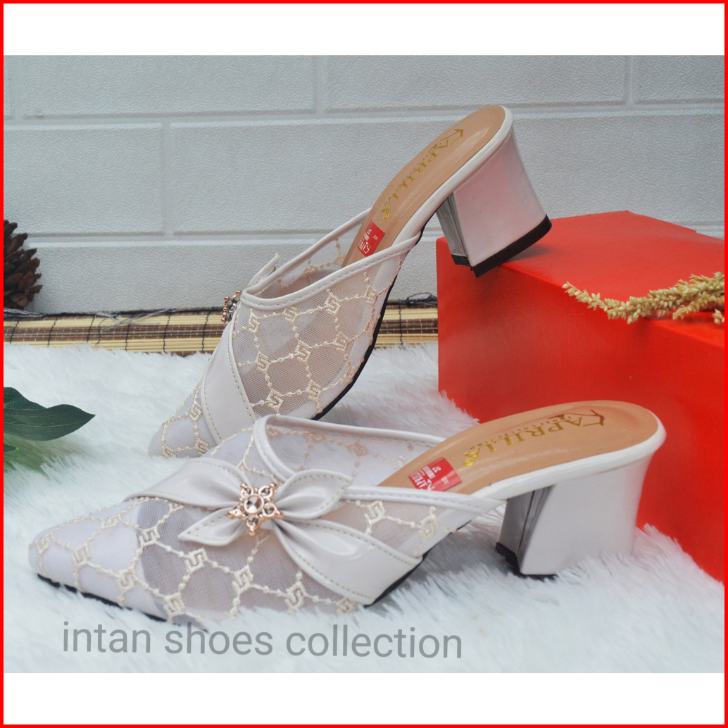 Aprilia Sepatu Sandal Wanita Hak Tahu Kekinian - Sandal Selop Brukat Pesta Kondangan Wanita - Sendal Wanita Slip On Anti