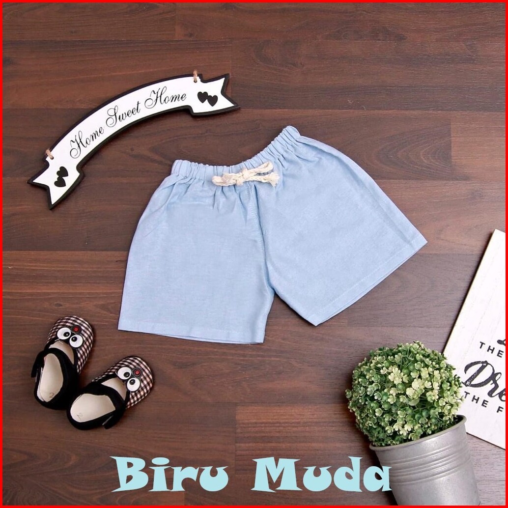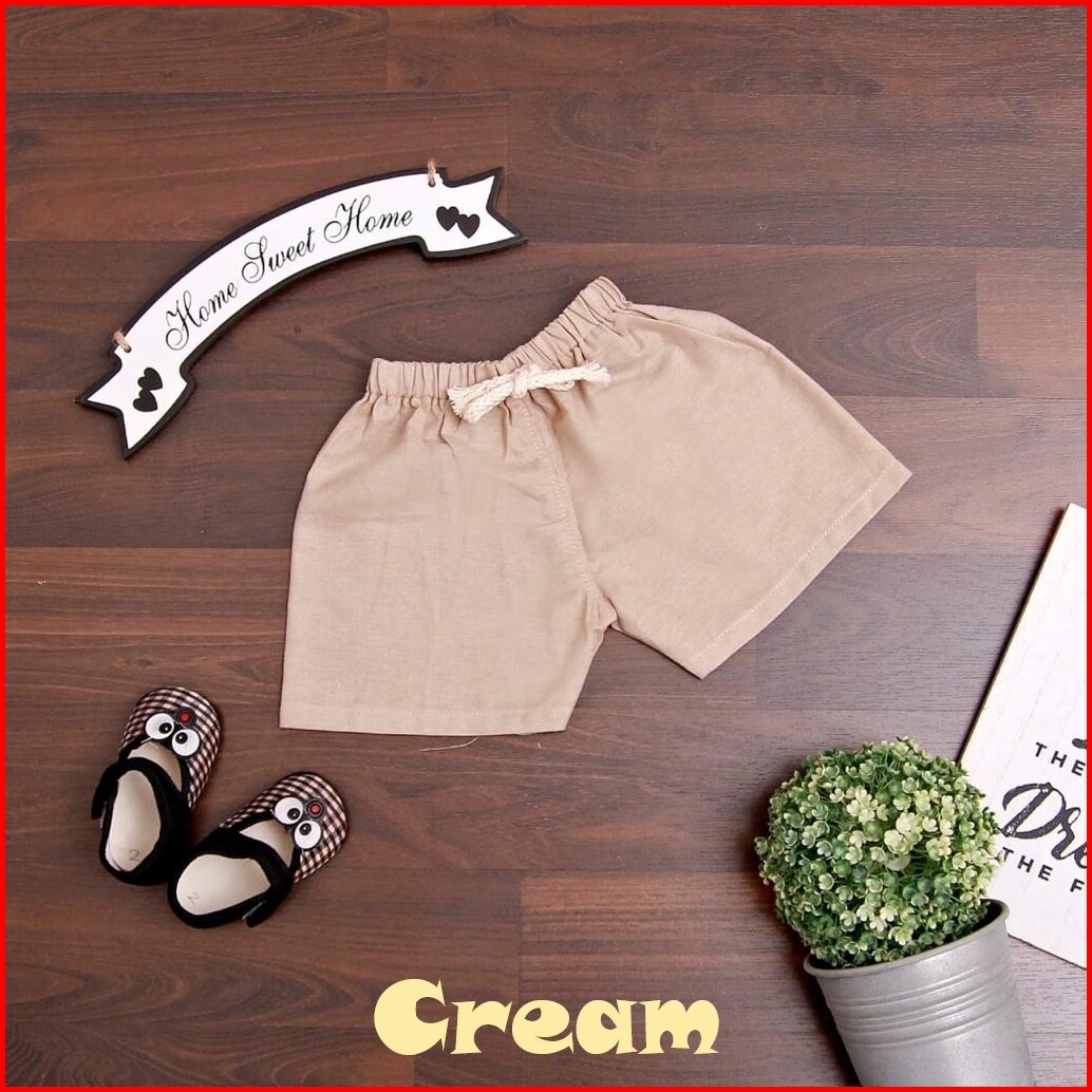 Jikialiang - Celana Pendek Anak Polos Usia 1-12 Tahun Bahan Katun Linen