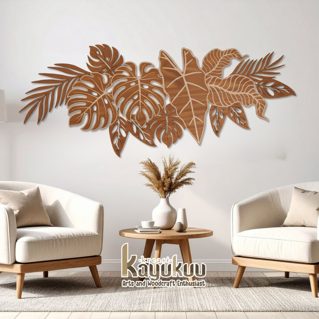 Kreasikayukuu Hiasan Pajangan Dinding Motif Daun Monstera Kayu Timbul Aesthetic
