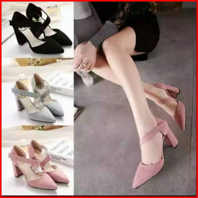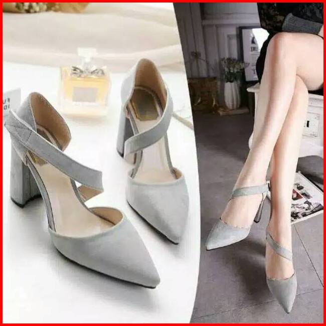 Gs28 Sandal Palang Hak Tahu 5cm Selempang Suede