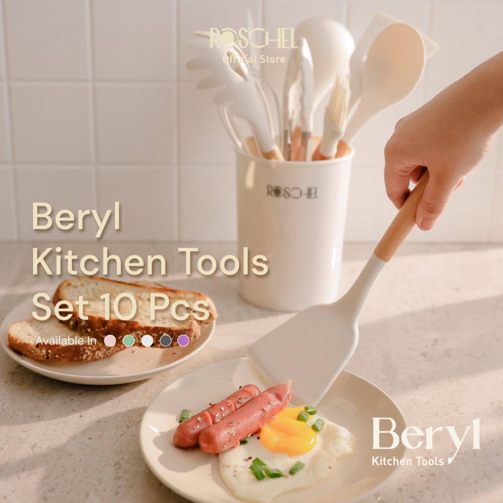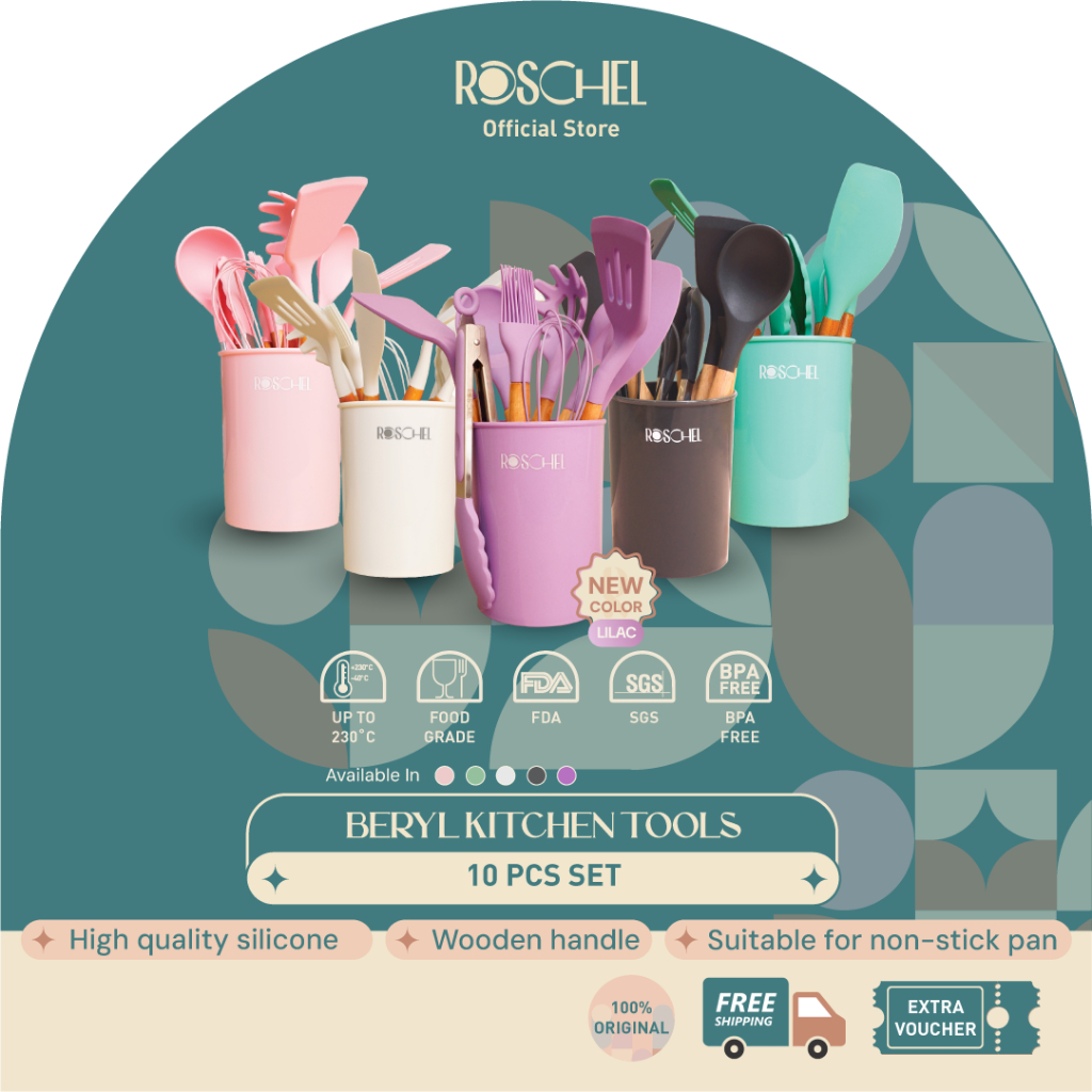 Roschel Beryl 10 Pcs Set Kitchen Tools Alat Masak Spatula Set Sutil Sodet Silicone ISI 10 PCS TAHAN PANAS RTS-110