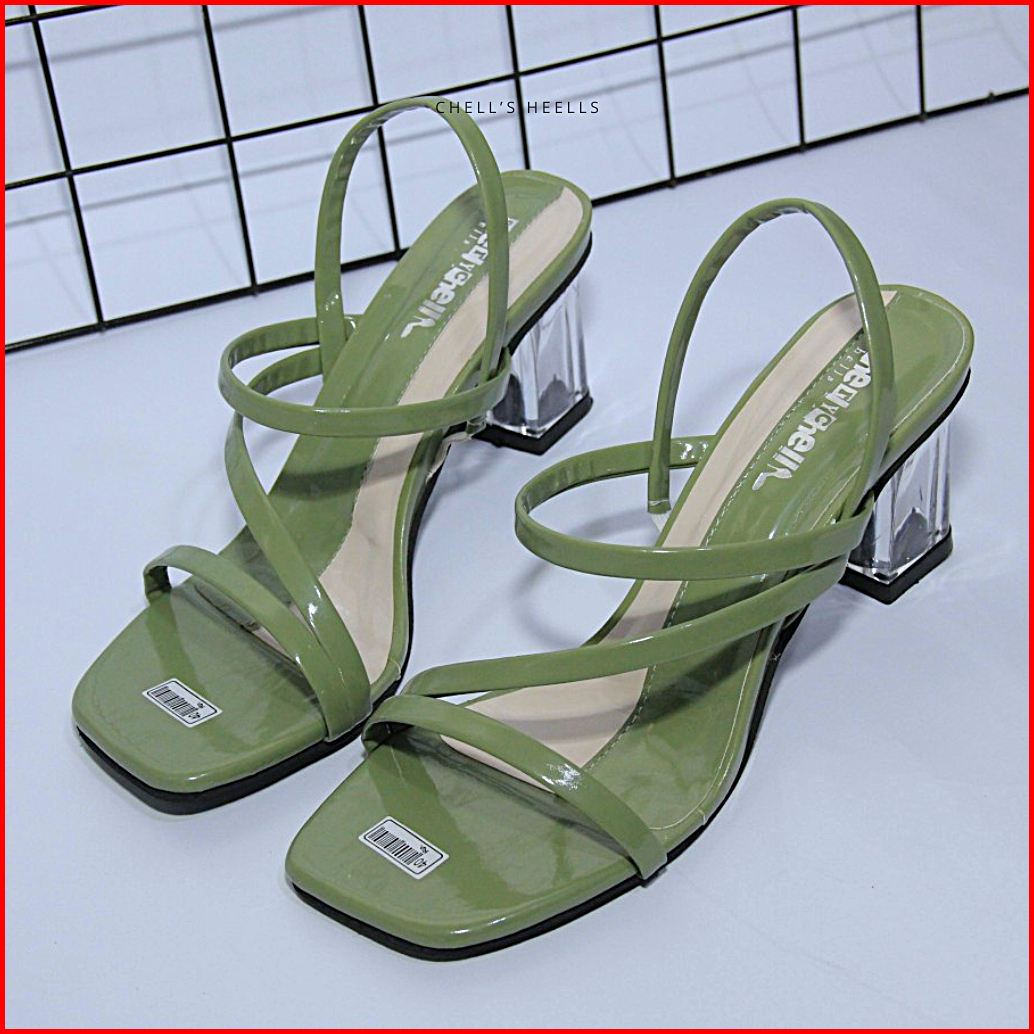 Sandal High Heels Quenssa Hak Kaca 7cm Bening Transparan