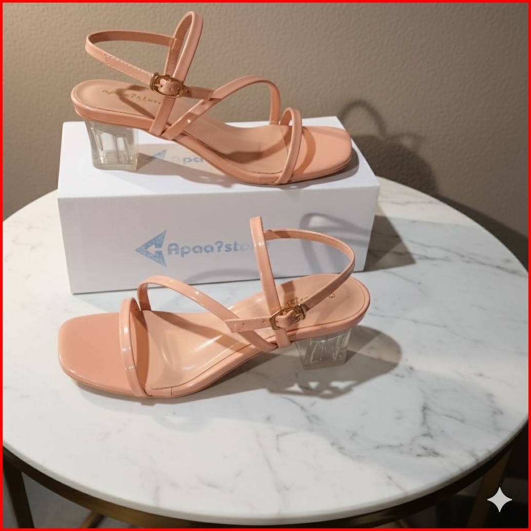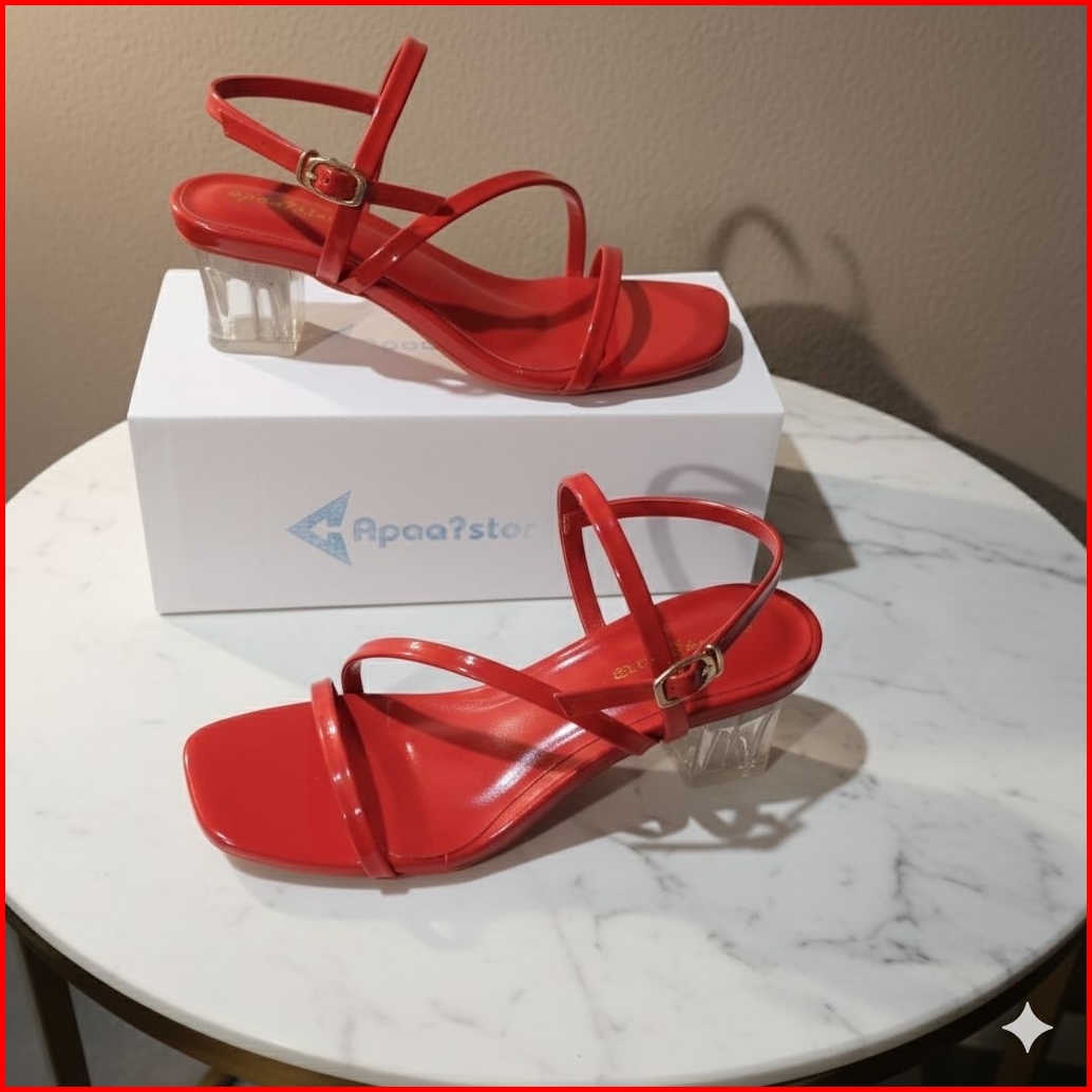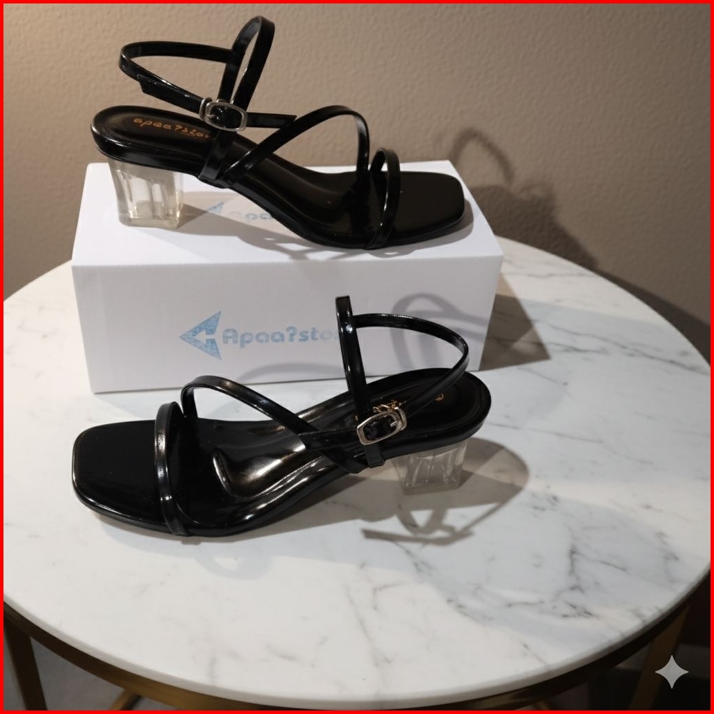 Apaa Store.sandal Wanita Hak Kaca 5cm Tali Gesper Terkini Size 36 Sampai 43 Gk01
