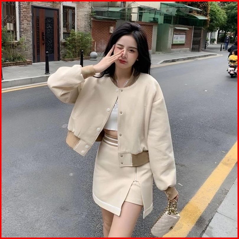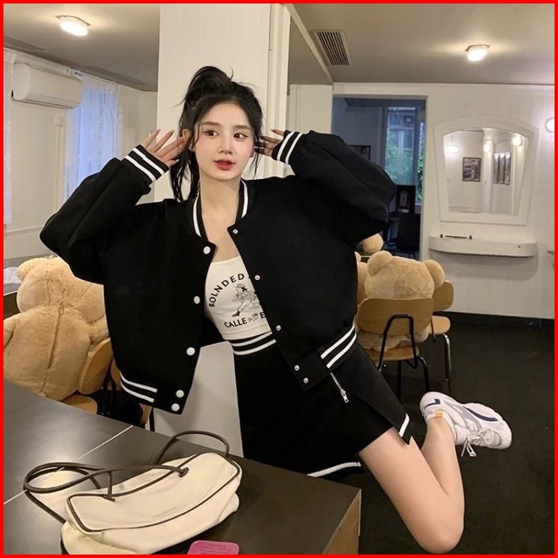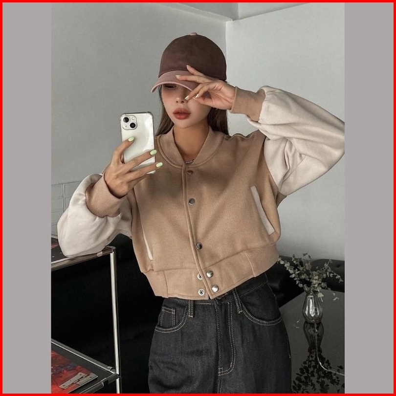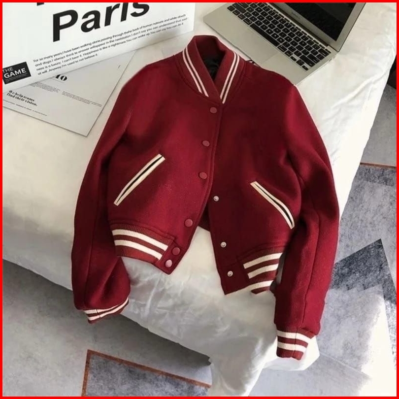 Baseball Stripe Croope Jaket Korean Style Fleece