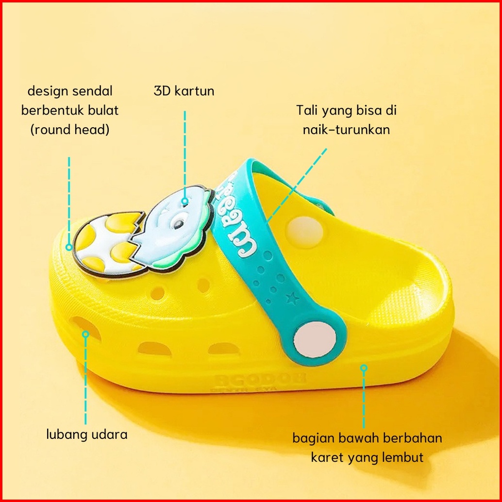 Wakakids Sandal Anak Laki Laki Dan Perempuan Karakter Lucu Model Baim Tali Belakang Slippers Karet Non Slip Venhs