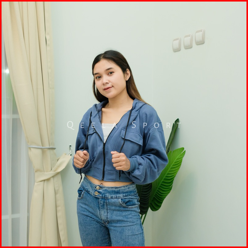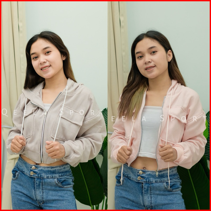 Hoodie Crop Zipper Wanita Two Pocket Cargo Premium Jacket Wanita Jaket Wanita Korean Crop Zipper