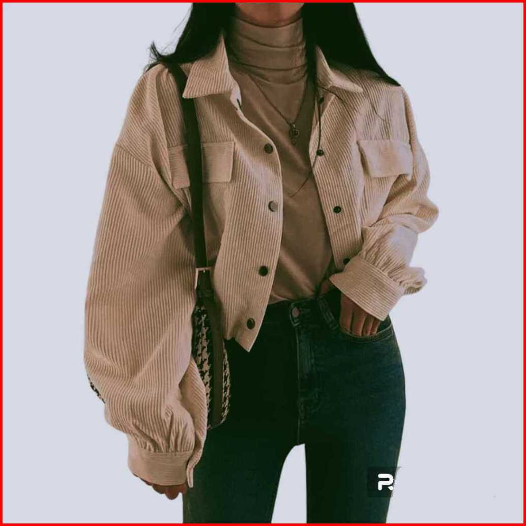 Jaket Crop Corduroy Wanita Korean Retro Style Outer Lengan Panjang