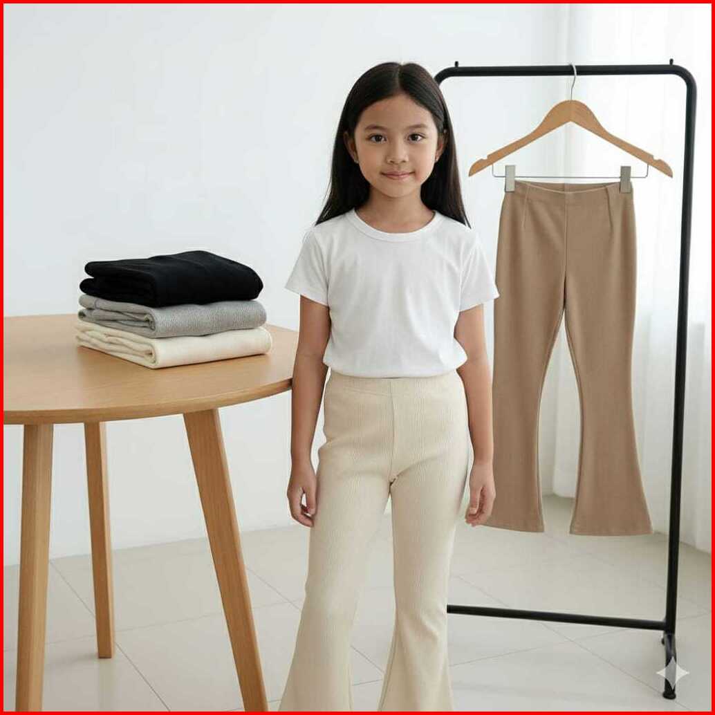Celana Anak Perempuan Cutbray Knit Serat Bambu Usia 2-12 Tahun