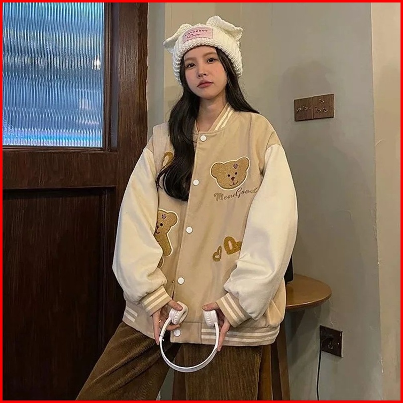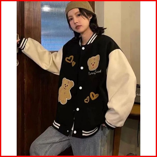 Jaket Baseball Wanita Allsize Meme Good Bear Baseball Varsity Jaket Baseball Korean Style
