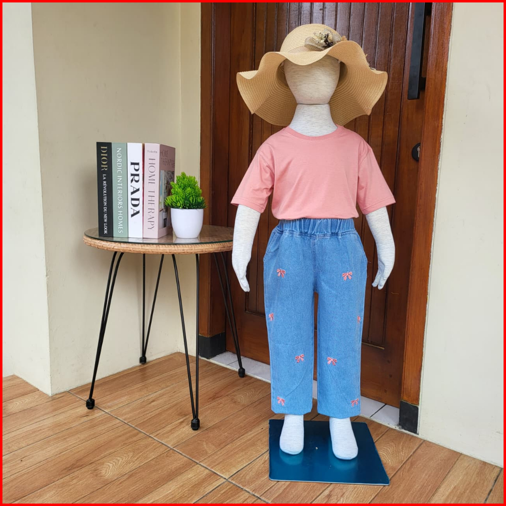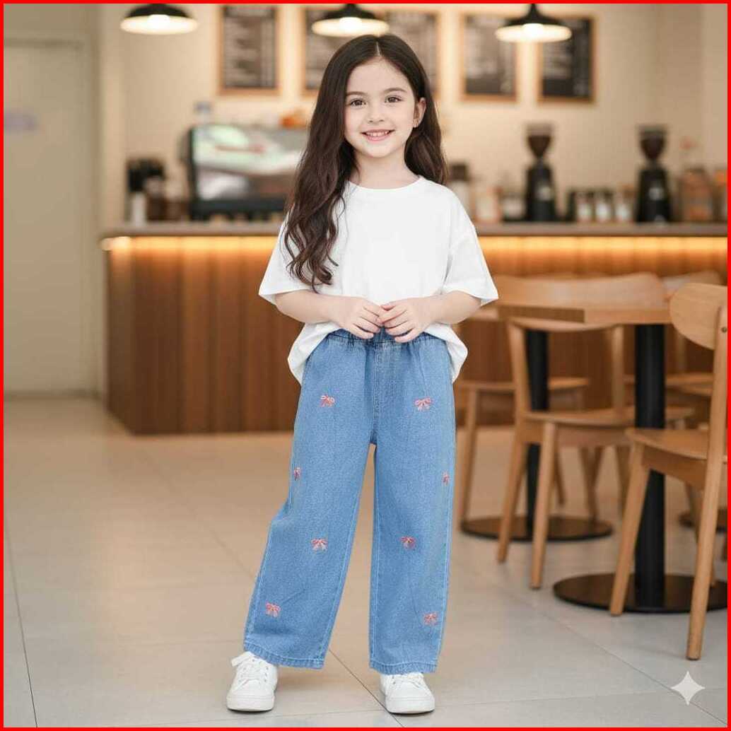 Celana Jeans Anak Perempuan Bordir Pita Pink Usia 1-10 Tahun Cj-012