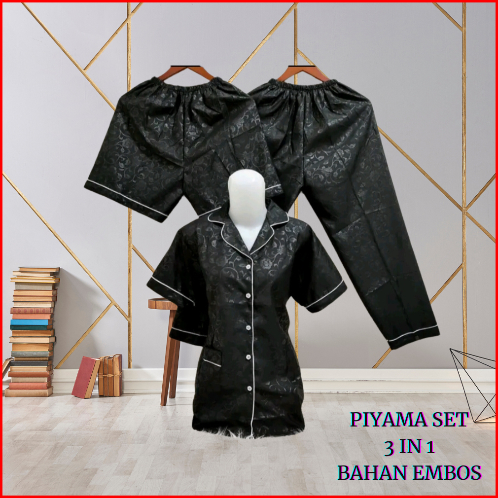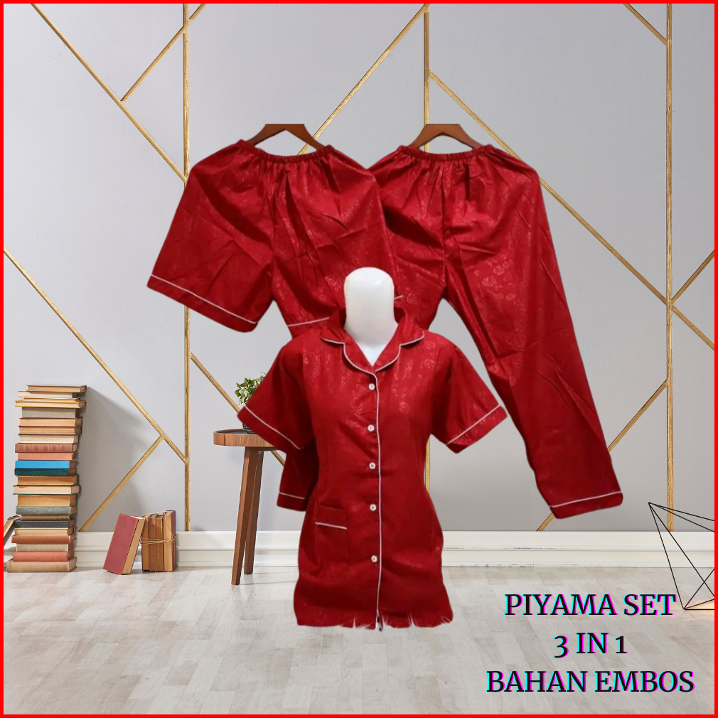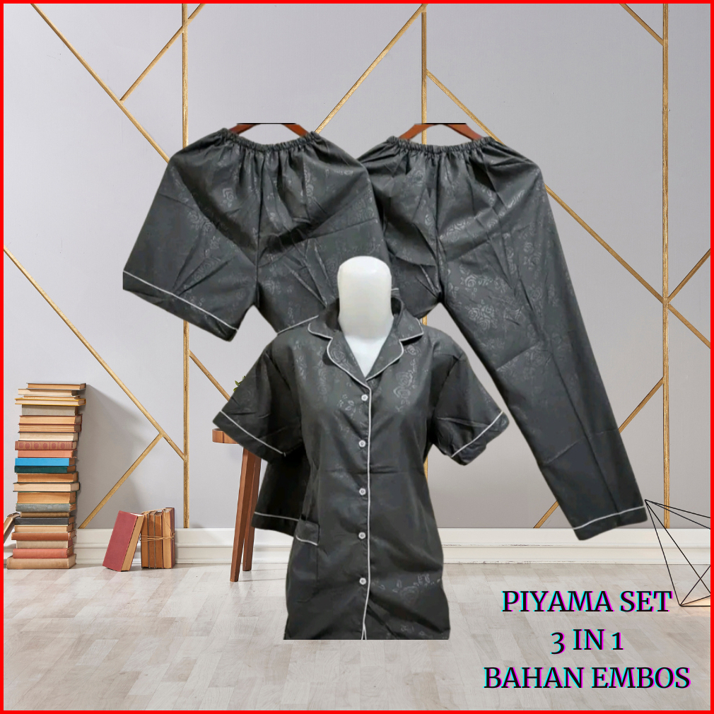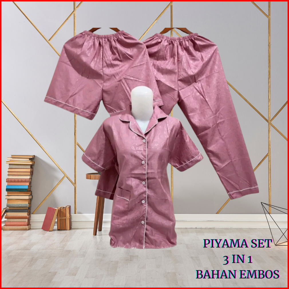 Baju Tidur Piyama 3in1 Jumbo 3xl Hembos Ld120 Setelan Wanita Tidur