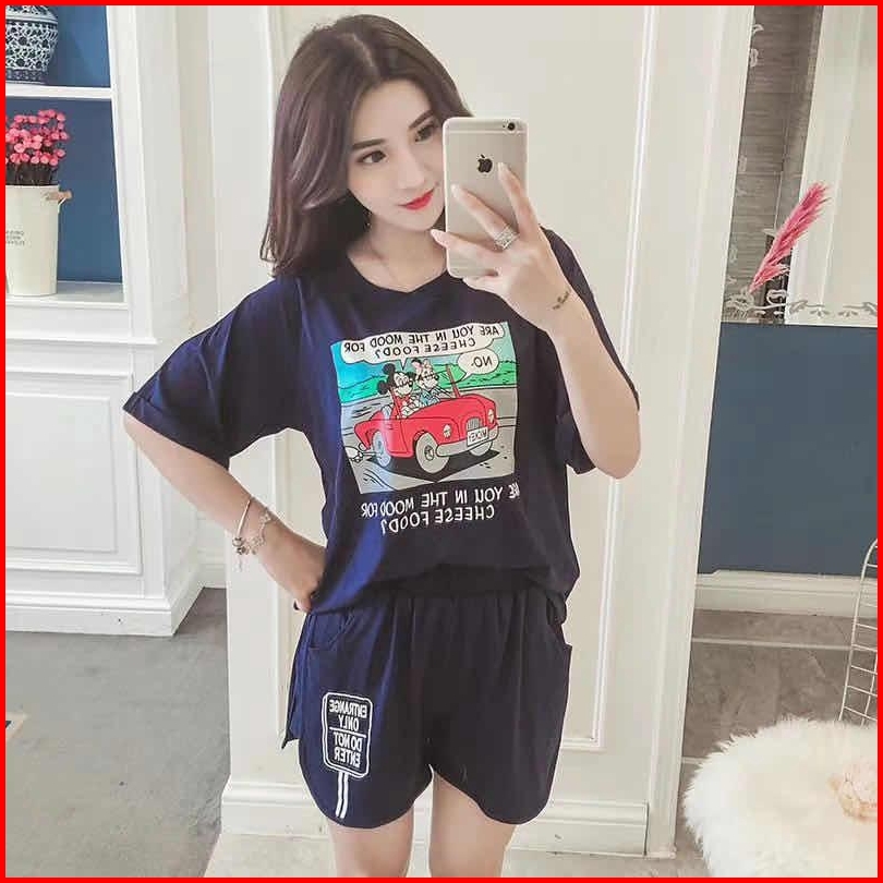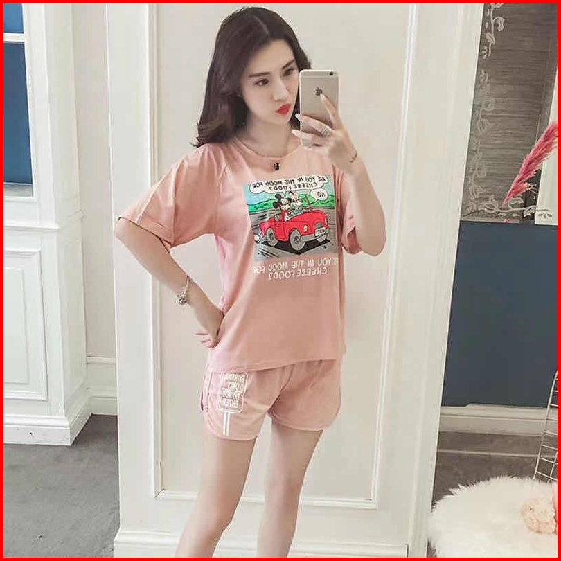 Rainbow - Baju Tidur Dewasa Set Hp Santai Best Seller Motif V-stroberi Mickey
