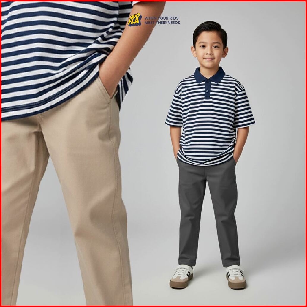 Hoofla Celana Chino Anak Panjang Reguler Fit Cotton Twill Strech Usia 2 - 12 Tahun Cowo Laki Laki Basic Chino Pants
