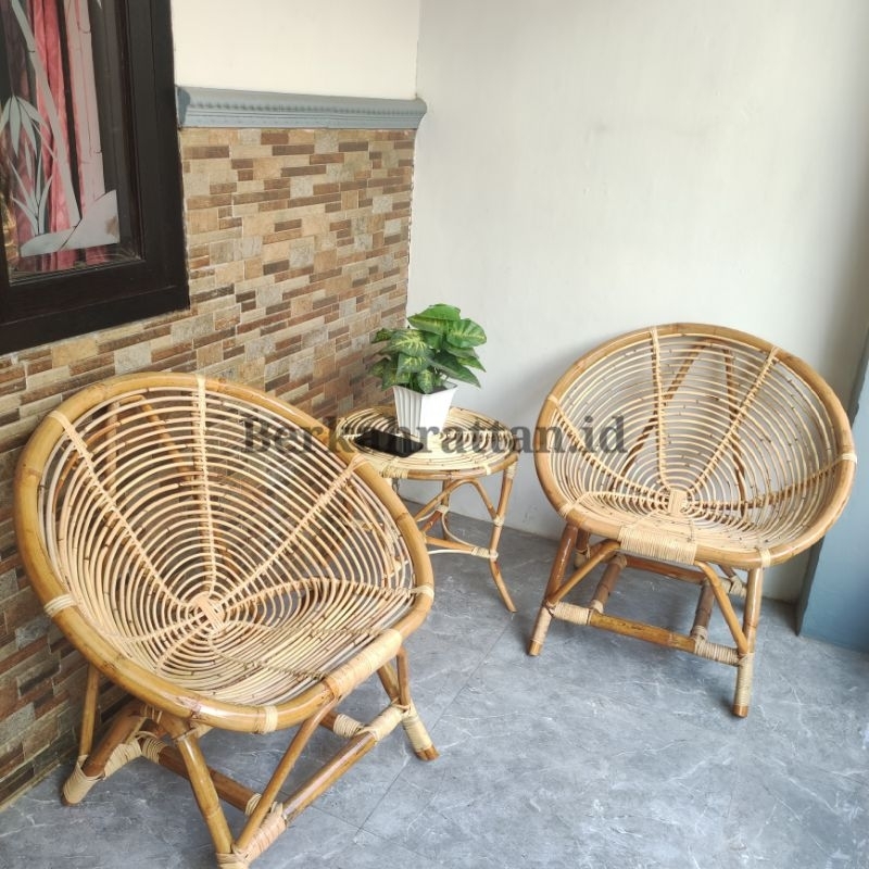 KURSI TERAS KERANG ROTAN JUMBO 1 SET DENGAN MEJA / KURSI TERAS ROTAN / KURSI ROTAN ALAM