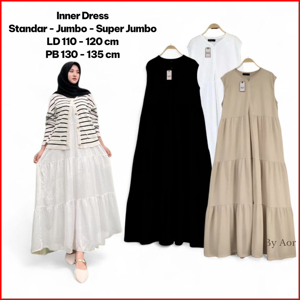 Inner Dress Rempel Tanpa Lengan Busui Maxi Bahan Rayon Twill Premium Kekinian By Aor