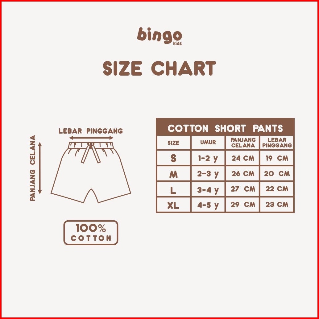 Bingokids Cotton Short Pants Celana Pendek Anak Balita Celana 1-5 Tahun Laki Premium