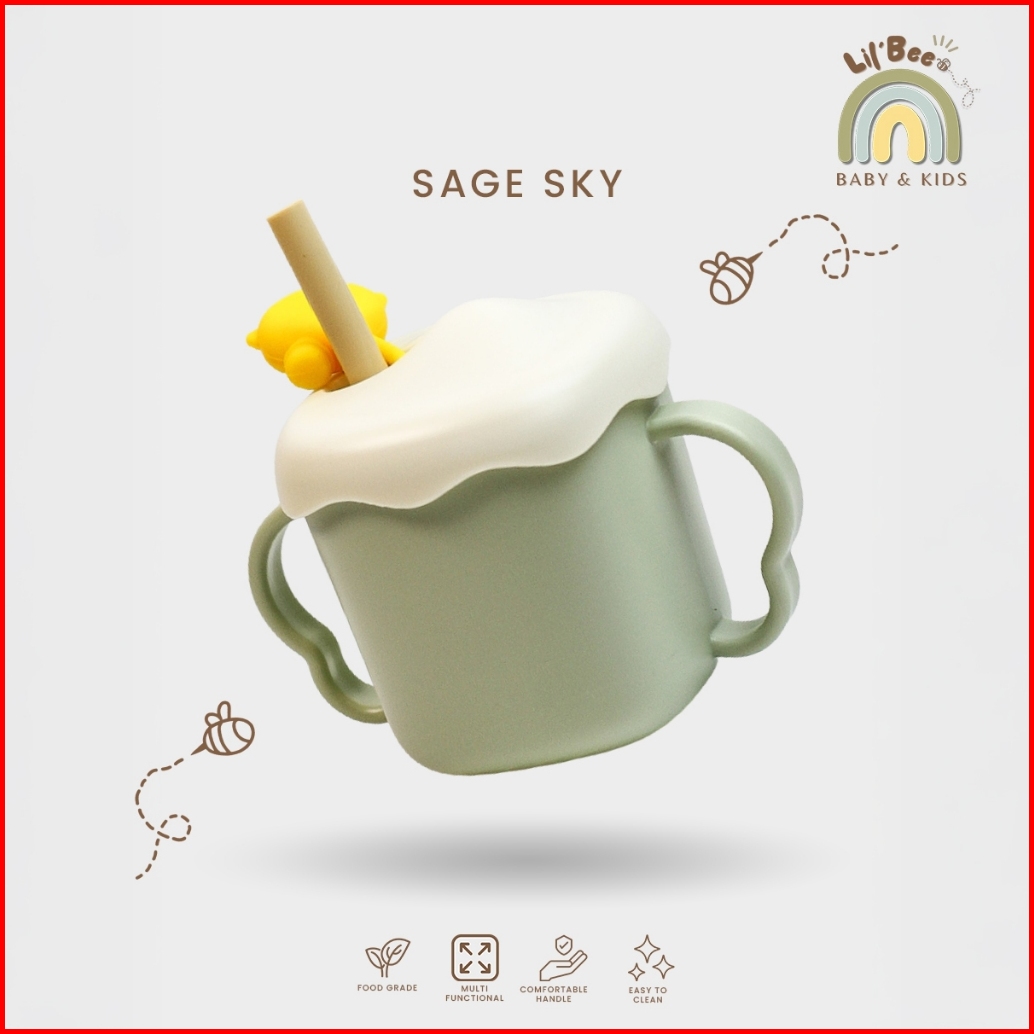 Harga Promo Launching Lilbee - Cloudy Cup Premium Gelas Minum Anak Stainless Sedotan Lucu