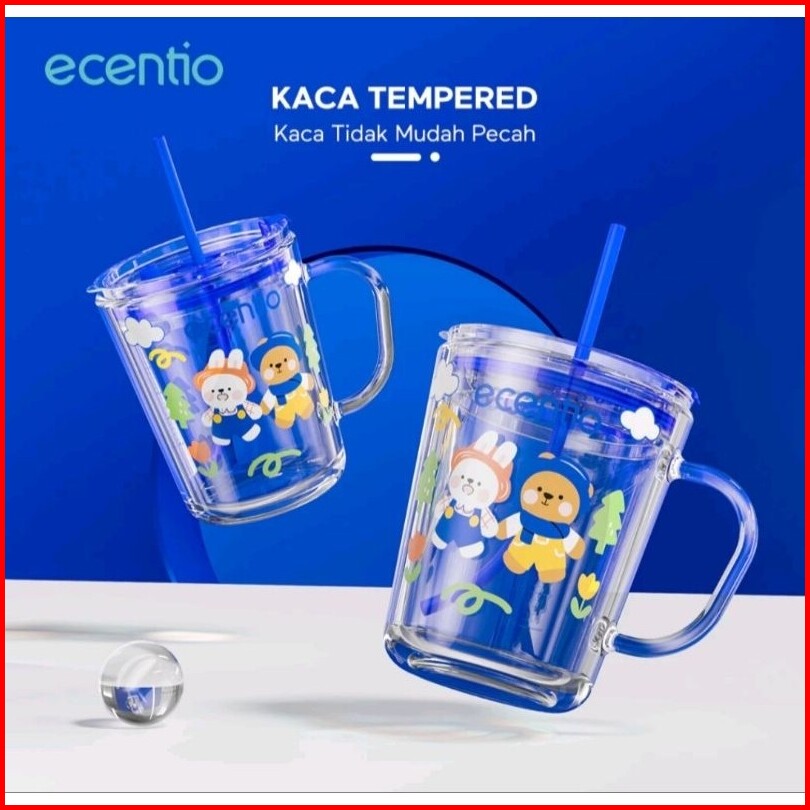 Ecentio 400ml Gelas Minum Anak Tumblr Gelas Aesthetic Cup Kaca Anti Bocor Mug Gelas Minum Anak Anak