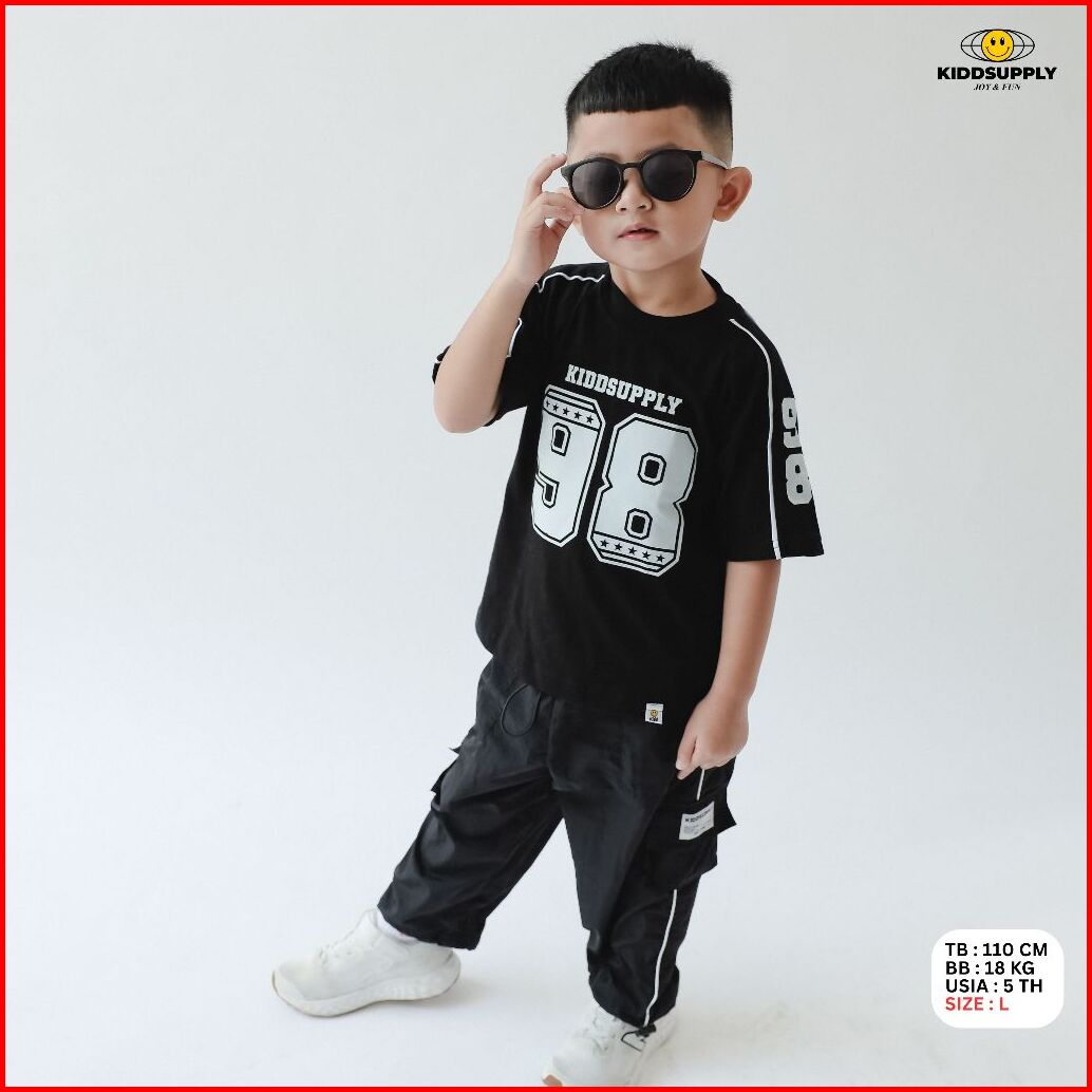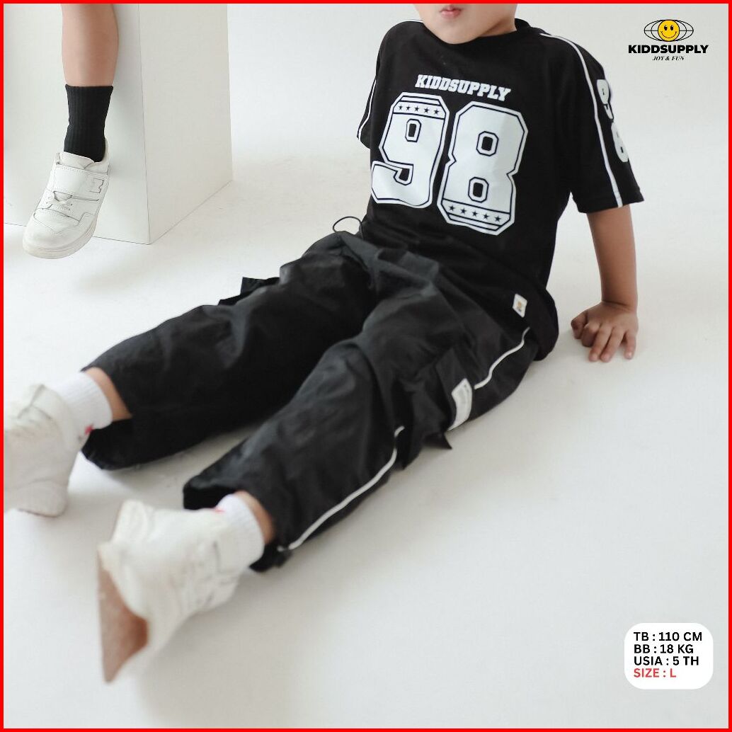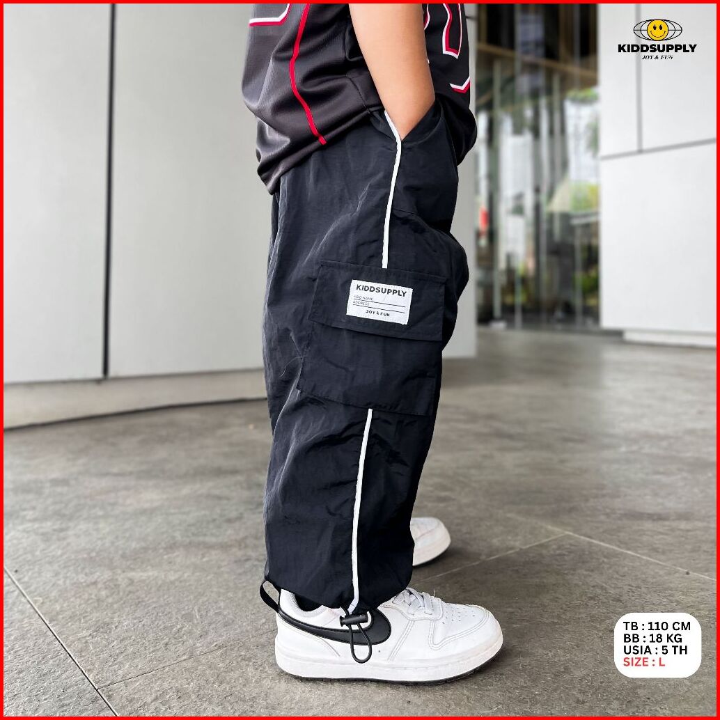Kiddsupply Celana Cargo Panjang Parachute Cringkle Basic Black Celana Panjang Anak Kd-lpc-crc