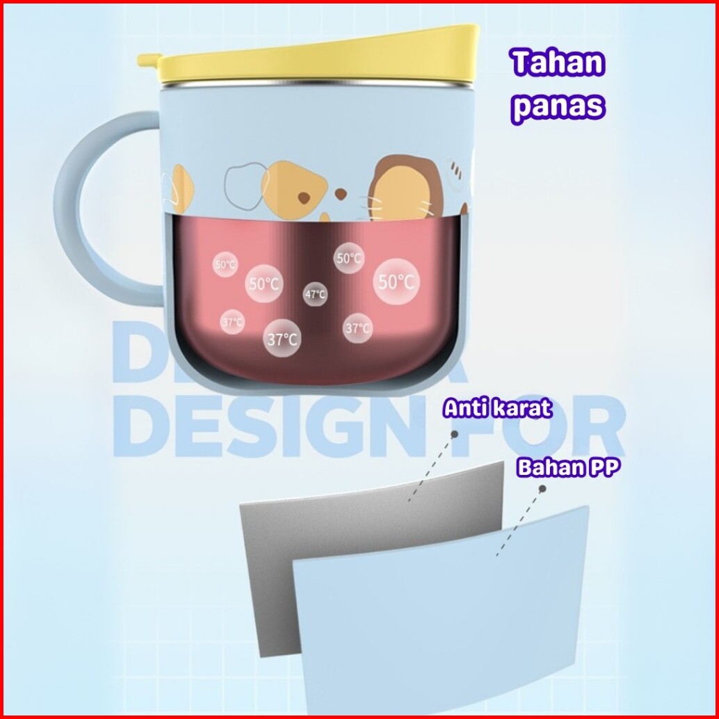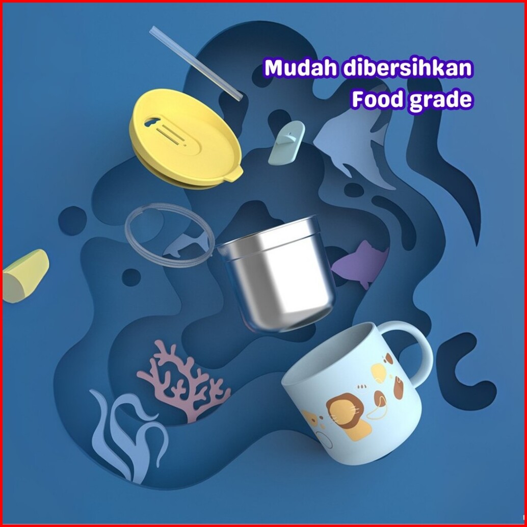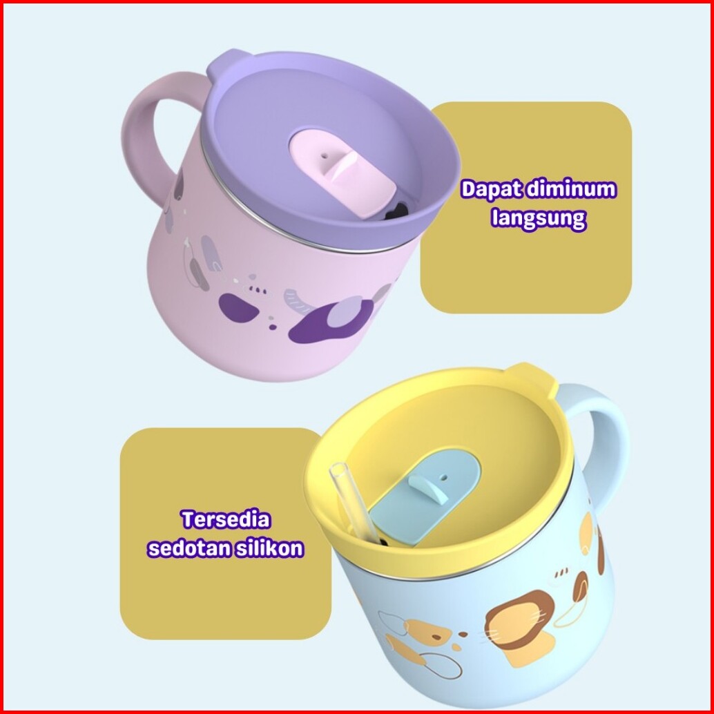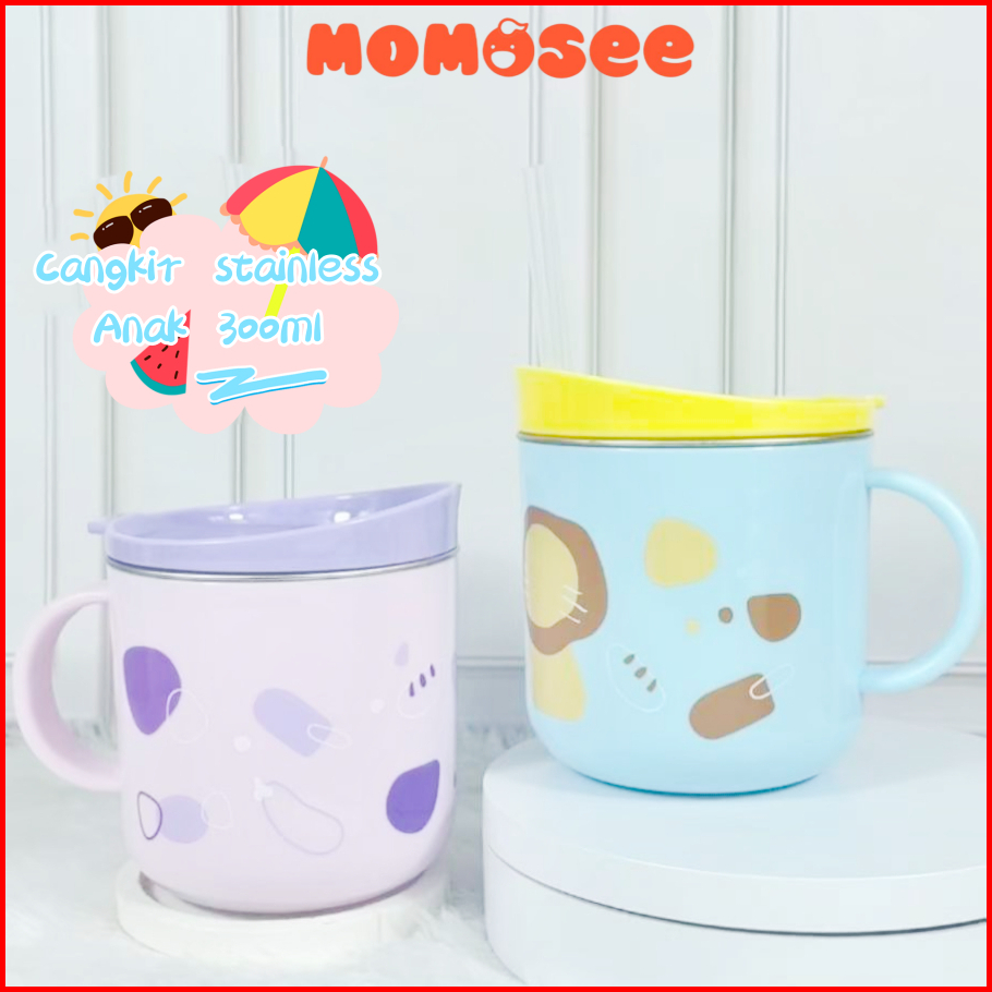 Momosee Gelas Anak Stainless Cangkir Anak Anti Panas Lucu Sedotan 300ml Anti Tumpah Bpa Free Dy12