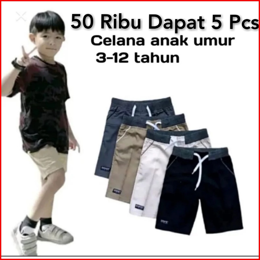 Celana Chinos Anak Polos 50 Ribu Dapat 5 Pcs Usia 3-12 Tahun Bahan Nyaman Dan Adem