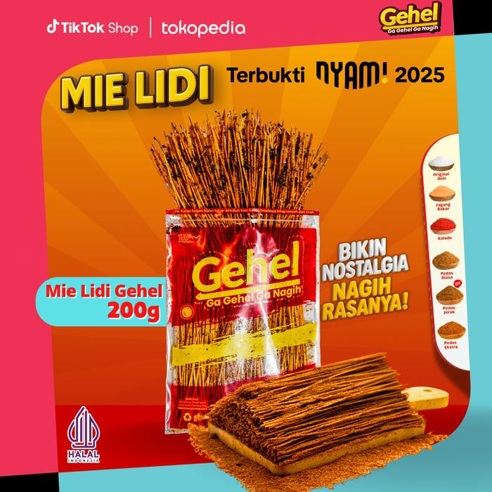Terbukti Nyam Mie Lidi Gehel 200Gr - Makanan Ringan, Food Noodles Goreng Instan Pedas Cemilan Snack - Pedas Biasa