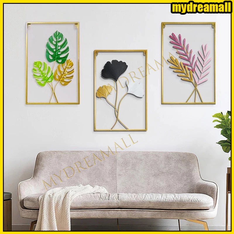 6040cm Green/pink Wall Decor Hiasan Dinding Metal Pajangan Dekorasi Ruangan Leaf Daun