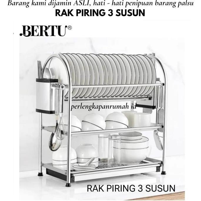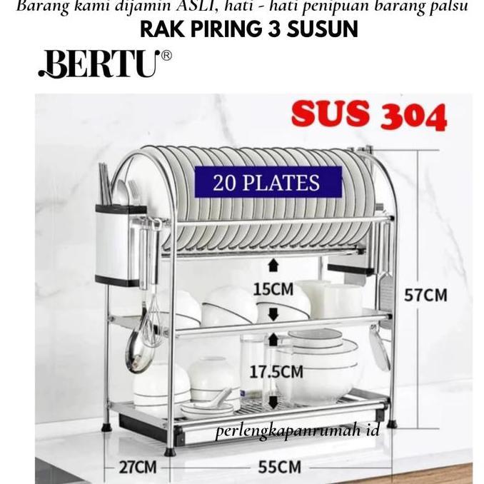 RAK PIRING STAINLESS STEEL 3 SUSUN DISH RACK 20 PLATES 3 TIERS SS 304
