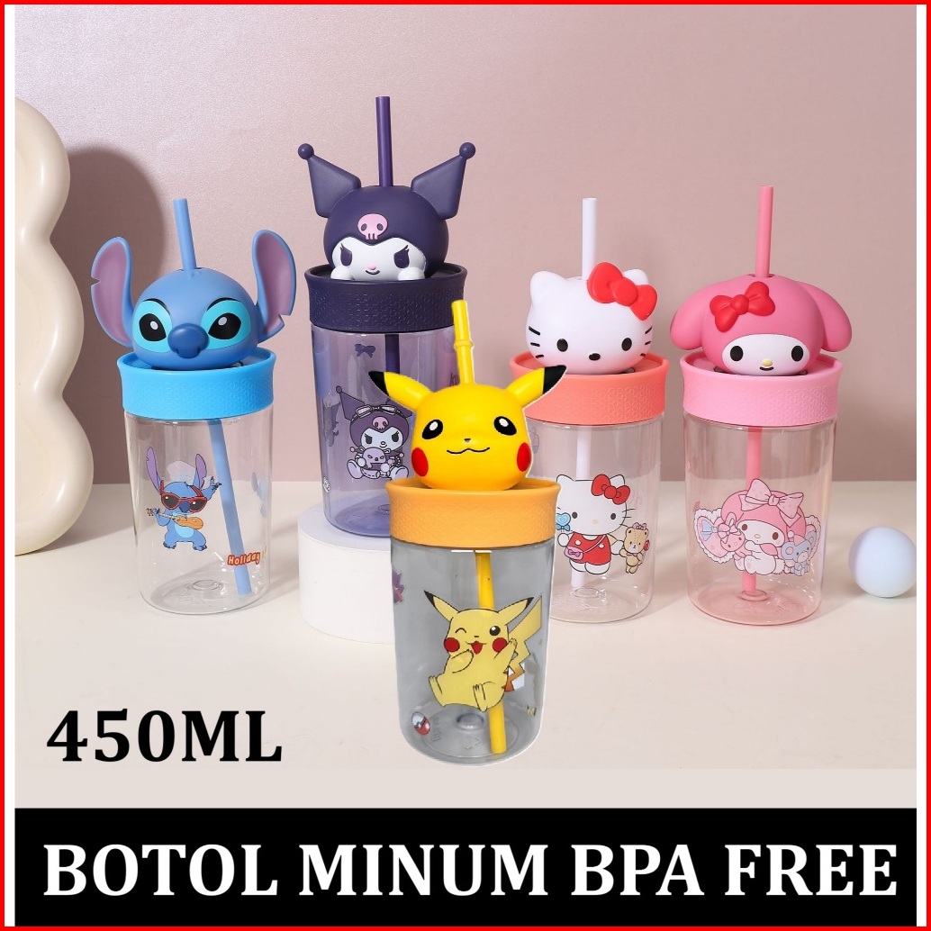 2025 Tumbler Botol Gelas Minum Sedotan 3d Karakter Original Import 450ml Bpa Free Sedotan Air Dingin Kepala Sanrio My Me