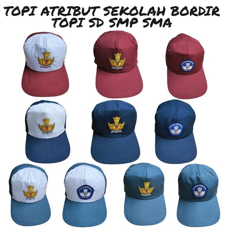 TOPI ATRIBUT SERAGAM SEKOLAH,SD,SMP,SMA,BORDIR