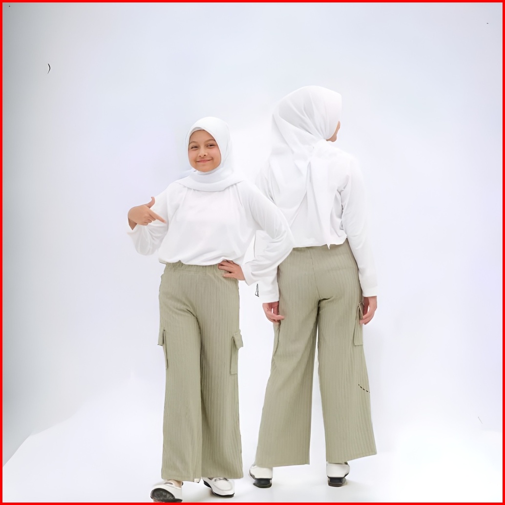 Celana Kulot Cargo Anak Perempuan 2-12 Tahun Kulot Knit Cargo Anak Tanggung Material Knit Premium