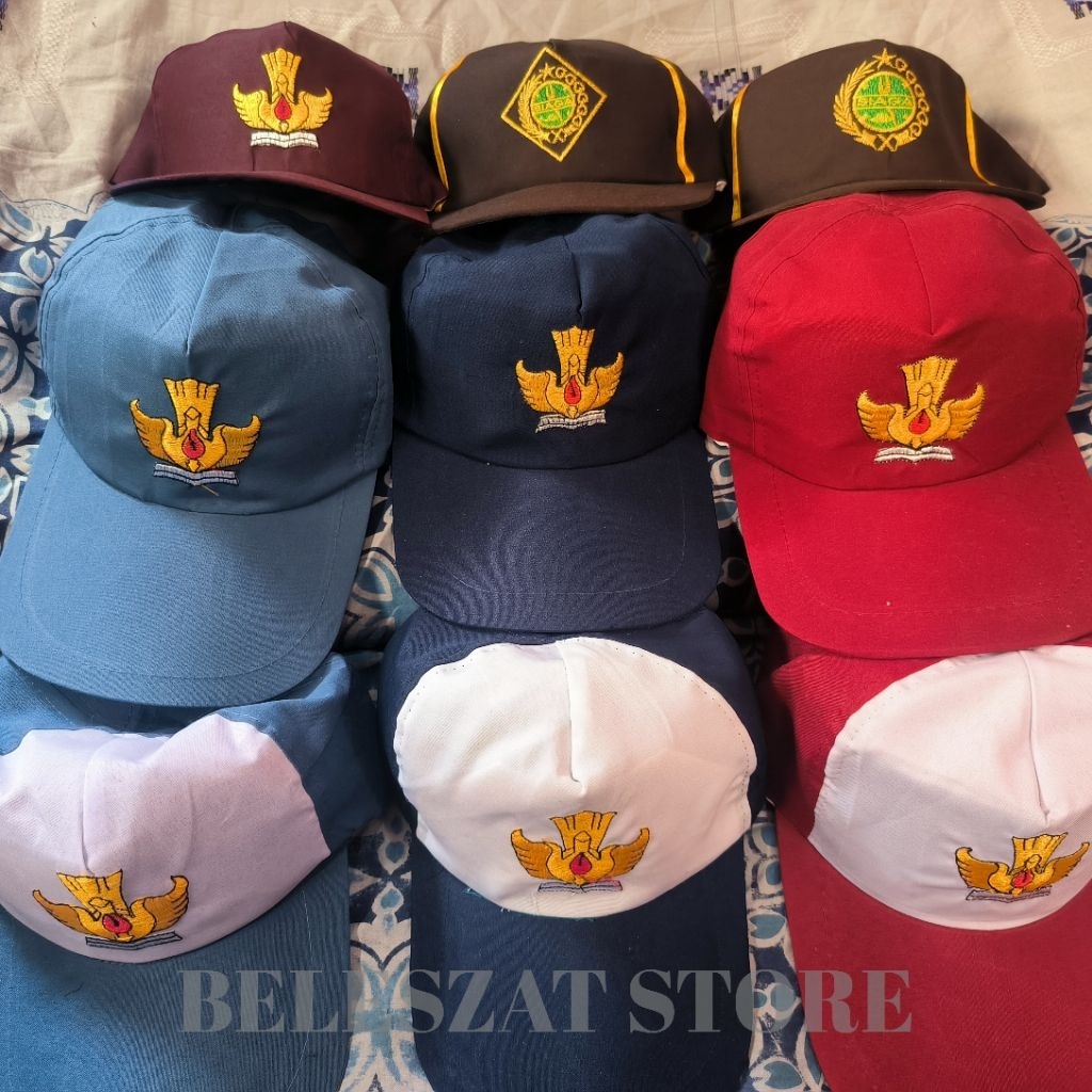 Topi SD SMP SMA Siaga Pramuka 20pcs Bahan Seragam Sekolah Logo Bordir