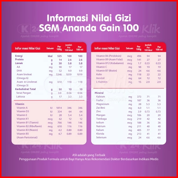 Sgm Eksplor Gain Optigrow 1 Vanila 400g 800g
