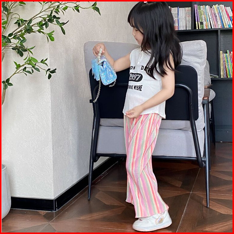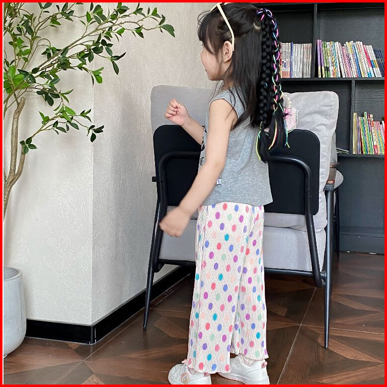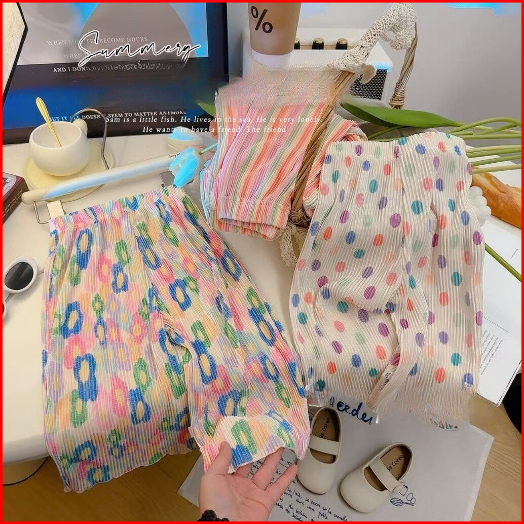 Duniababy 2-11 Tahun Celana Santai Anak Perempuan Lipit Model Lebar Motif Warna Warni Tali Pinggang Elastis Cocok Musim