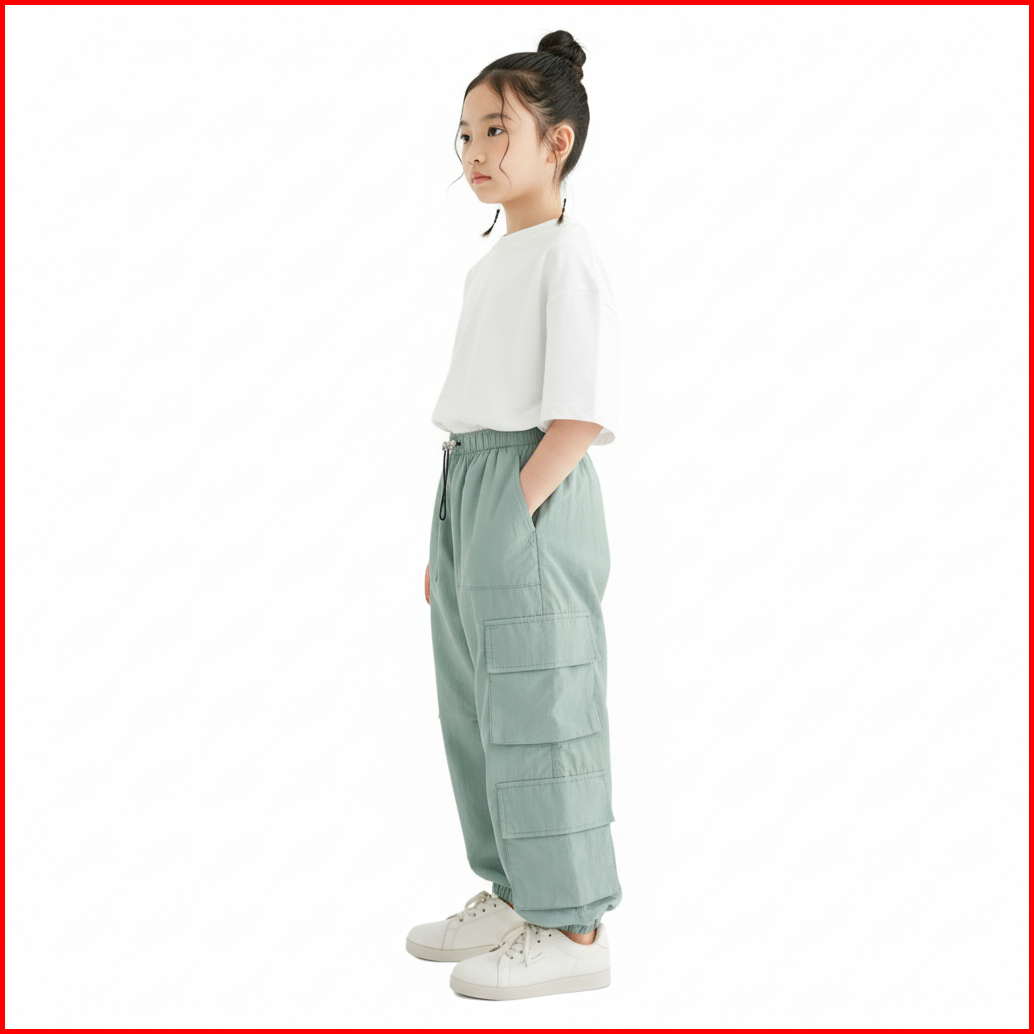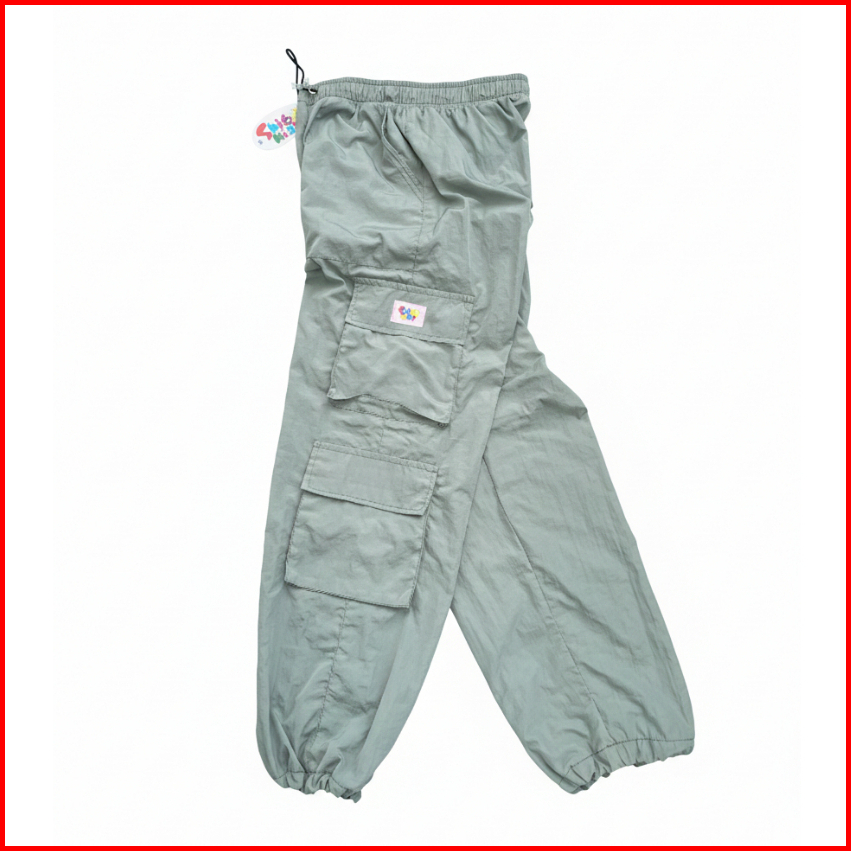 Shibakids Celana Cargo Sage Anak Perempuan Laki Laki 3-14 Tahun Dusky Crinkle Jogger Tali Serut