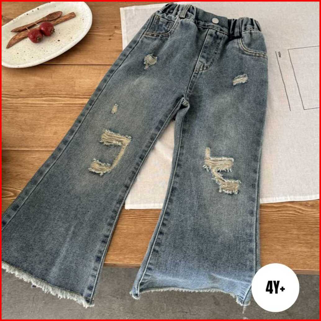 Pan630 Celana Panjang Anak Perempuan - Ripped Denim Jeans - Polos - Blue Biru