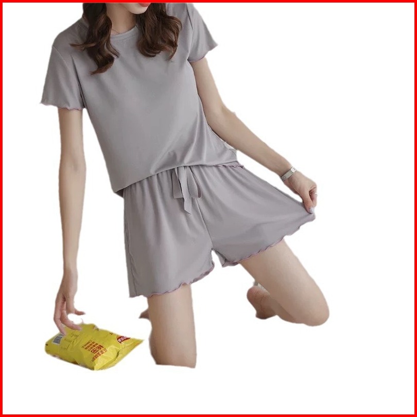 Setelan Piyama Wanita Garis Pinggir Poliester
