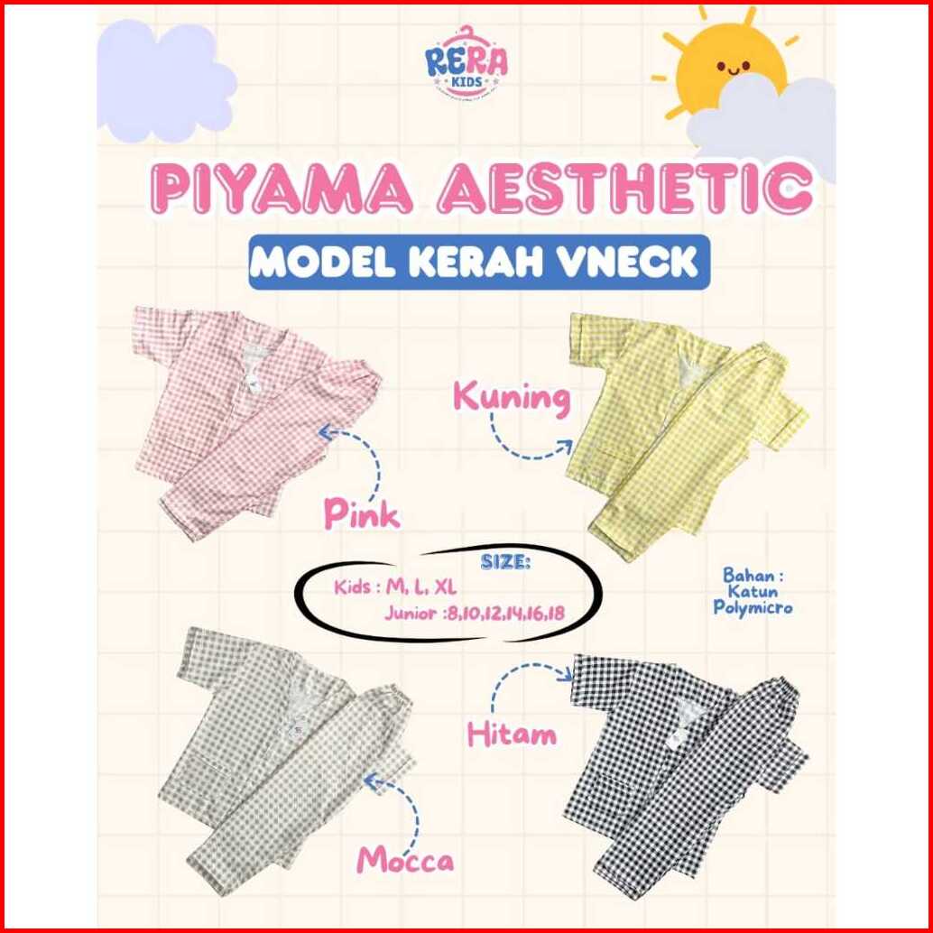 Piyama Remaja Kerah Vneck Dan Kerah Bulat Motif Kotak Pink Hitam Kuning Moca