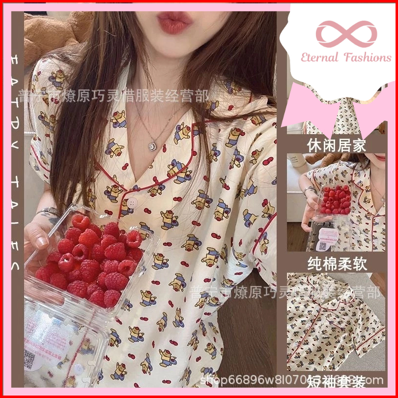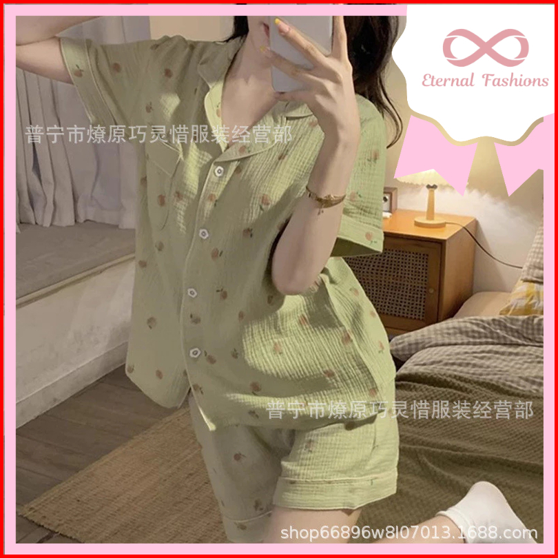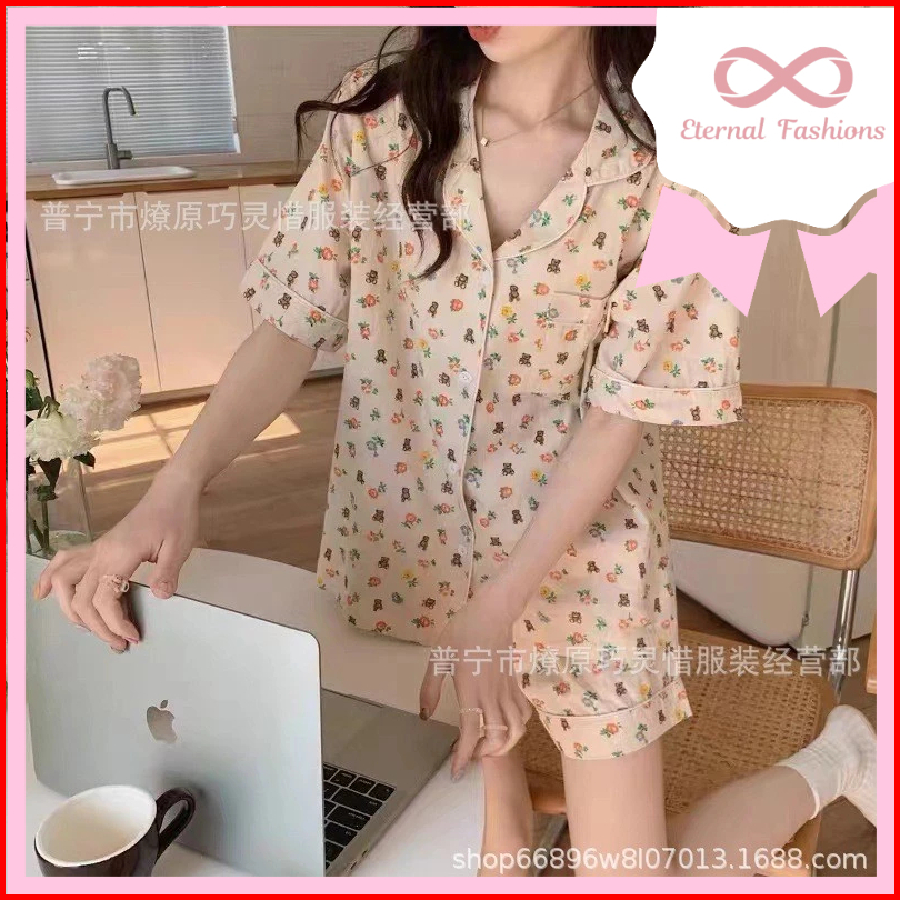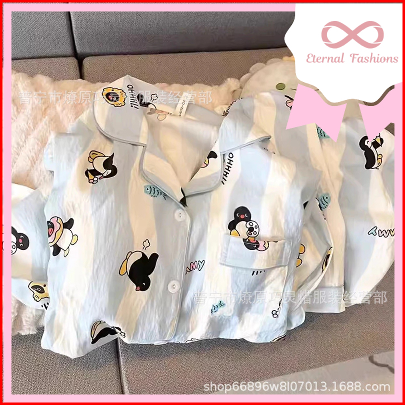 Eternalfashions Baju Tidur Set Import Celana Pendek New Motif Pajamas Kualitas Premium Bahan Crinkle Import Piyama Lucu