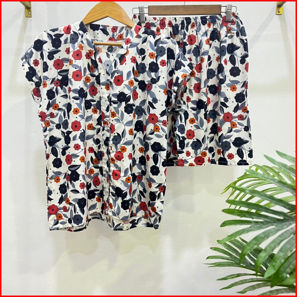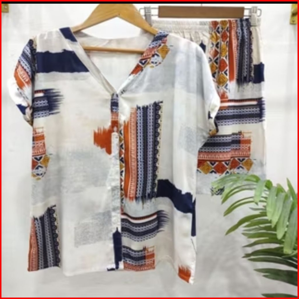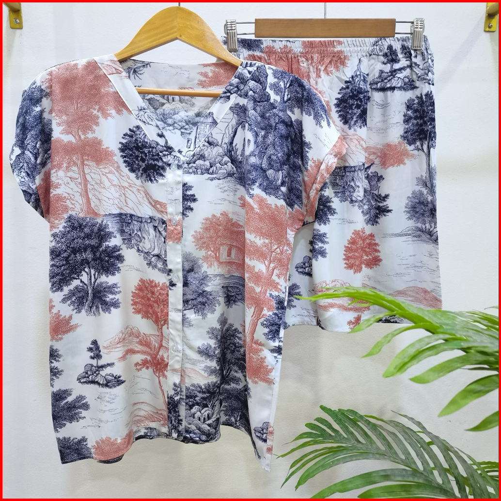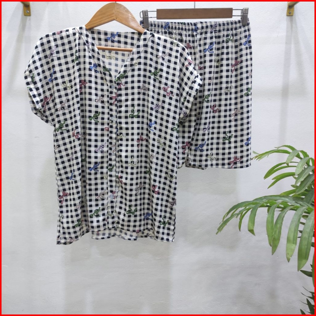 Baju Tidur Piyama Rayon Premium Setelan Berkerah V Neck Celana Pendek Kancing Aktif Piyama Termurah