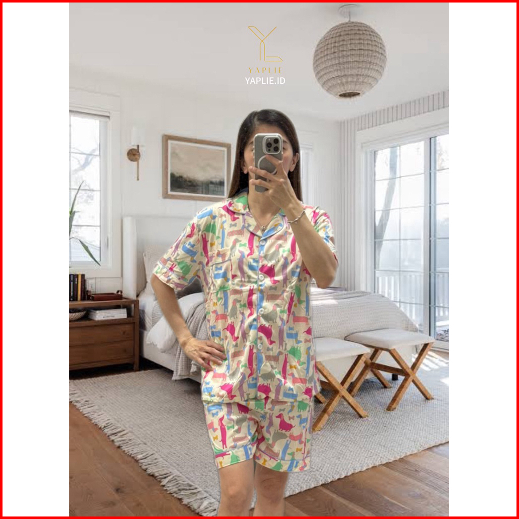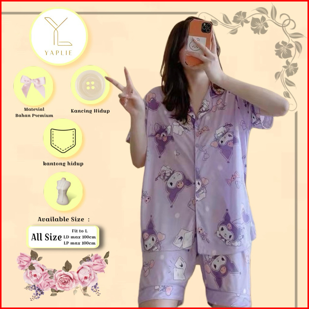 Yaplie Klece01 Piyama Korea Baju Tidur Piyama Wanita Setelan Kemeja Bahan Adem Dan Nyaman Seharian