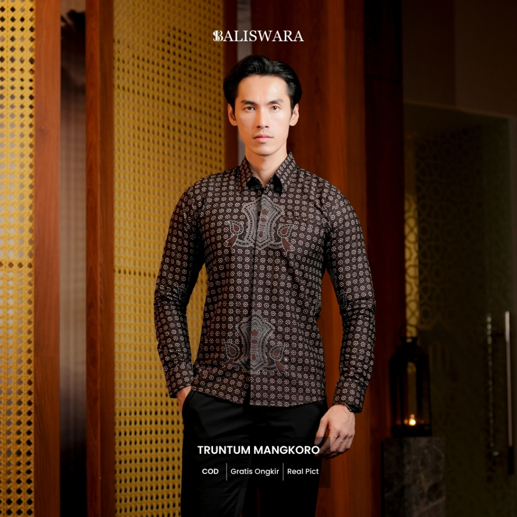 BALISWARA Batik Pria Slimfit Motif TRUNTUM MANGKORO Kemeja Cowok Laki Full Furing Bahan Premium Lengan Panjang Lengan Pe