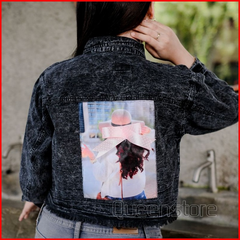 Jaket Jeans Wanta Chanmi Crop Rawis Snow Black Jaket Crop Jeans Pita Cewek Terbaru