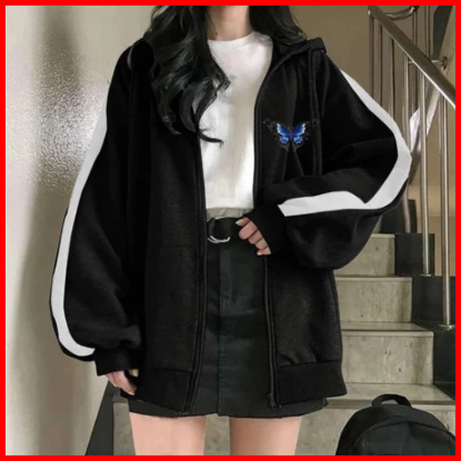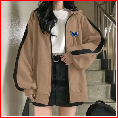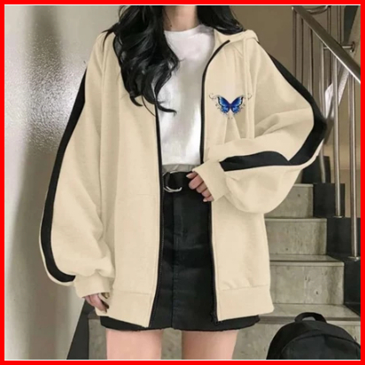 Jaket Wanita Xxl Sleeve Butterplay Zipper Hoodie Wanita Korean Fleece Tebal