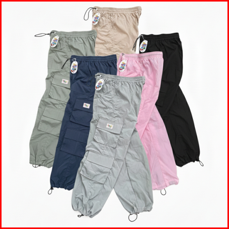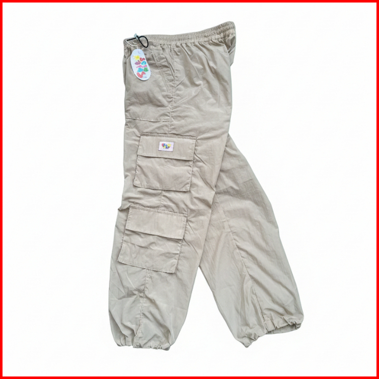 Shibakids Celana Cargo Beige Anak Perempuan Laki Laki 3-14 Tahun Dusky Crinkle Jogger Tali Serut