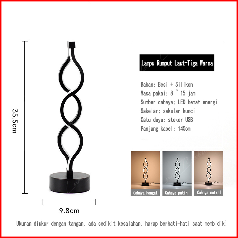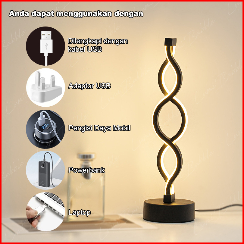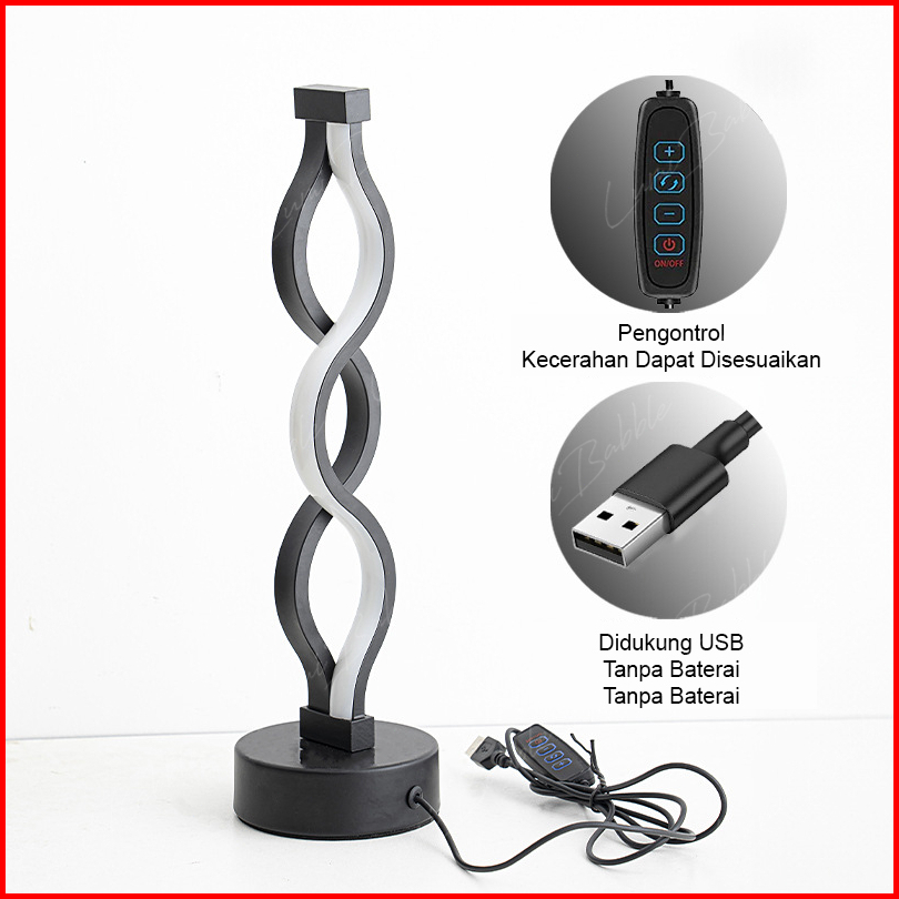 Lampu Led Meja Tidur Spiral Lampu Meja Aesthetic Korea Lampu Estetik Kamar Tidur Dapat Diredupkan Dengan 3 Suhu Warna