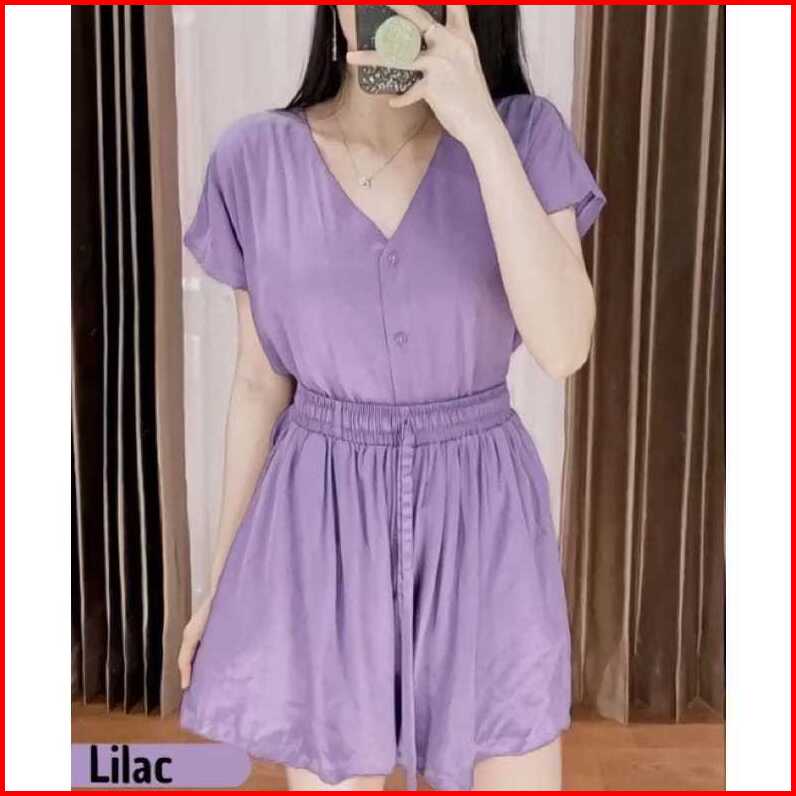 Piyama Rayon Pendek Baju Tidur Wanita Piyama Busui Full Kancing Hidup Babydoll Kekinian
