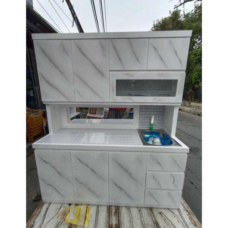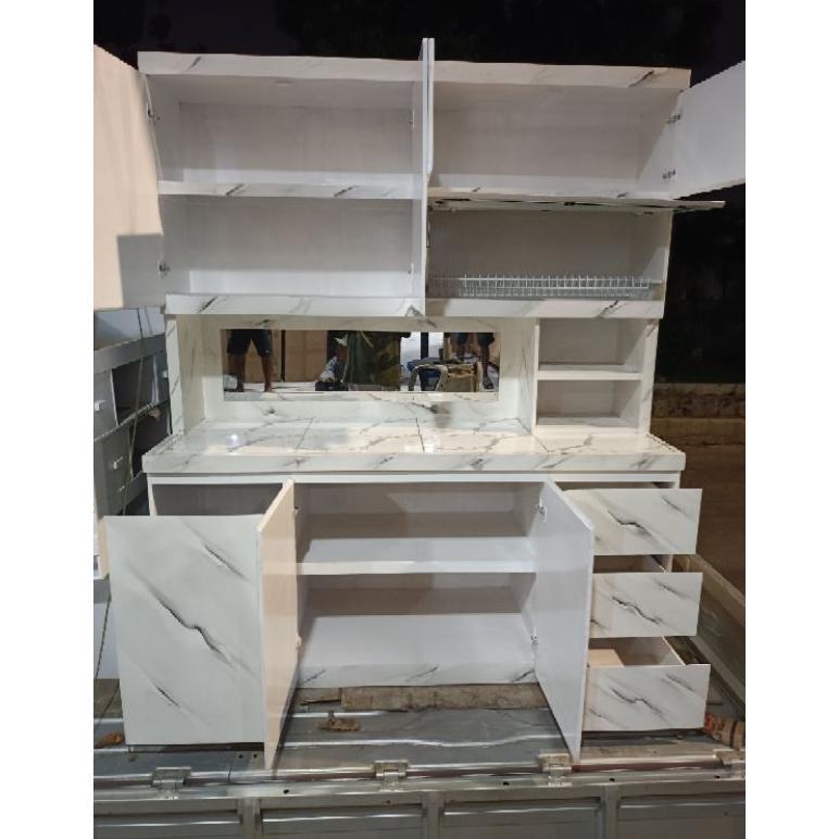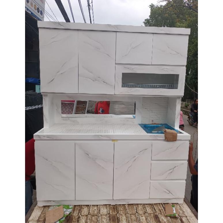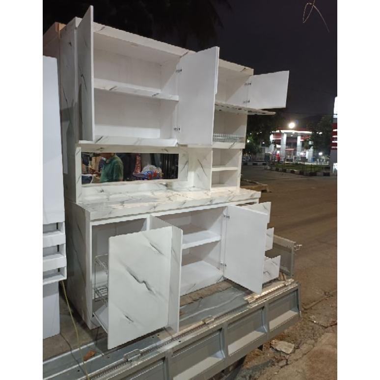 rak piring lemari sayur kayu dapur minimalis hidrolik pintu Sorong sleding cermin keramik laci 3 rell. motif matmer.. westavel